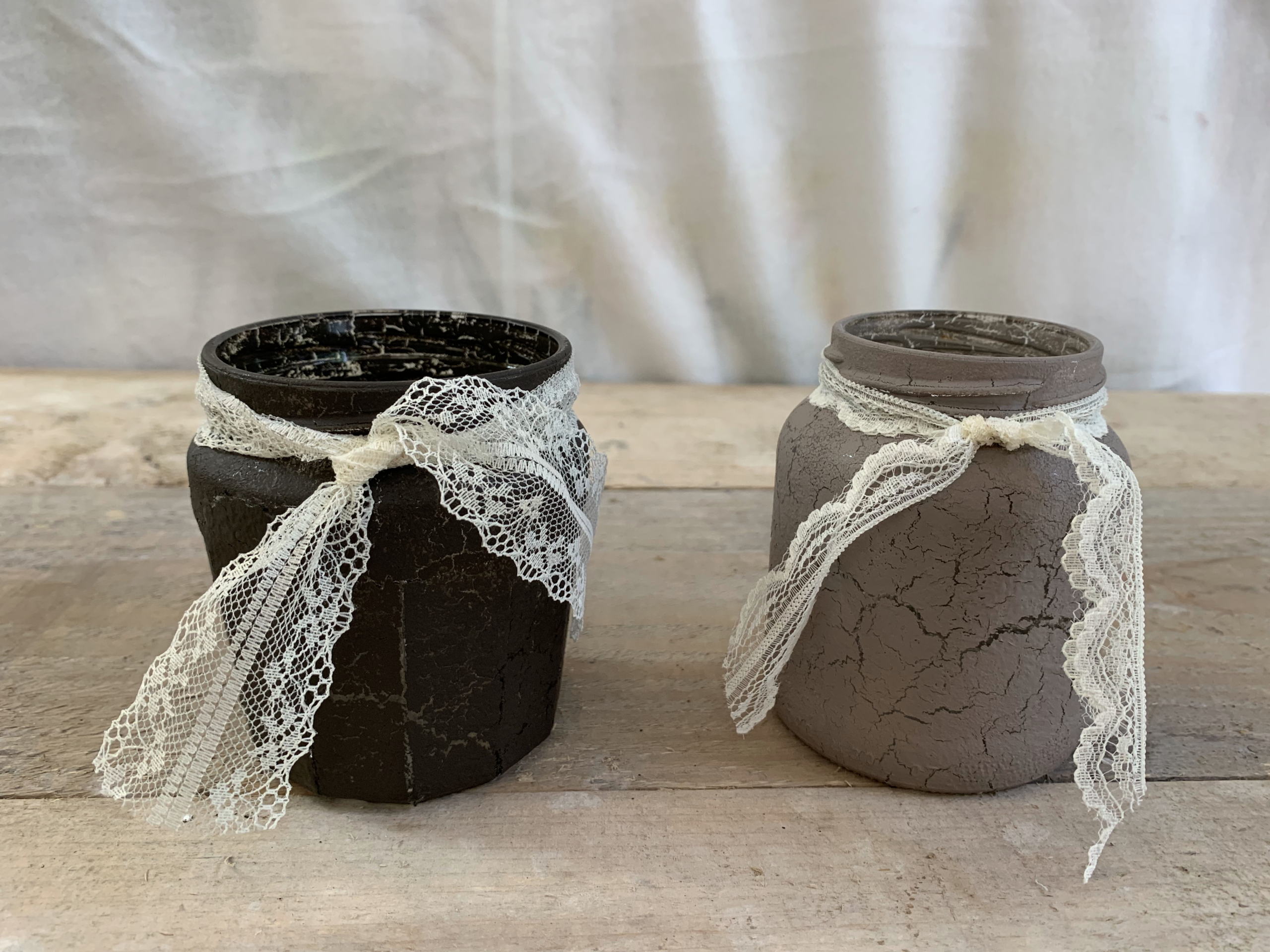 - Werken met craquelé, vintage chalk paint, effect liners en lint